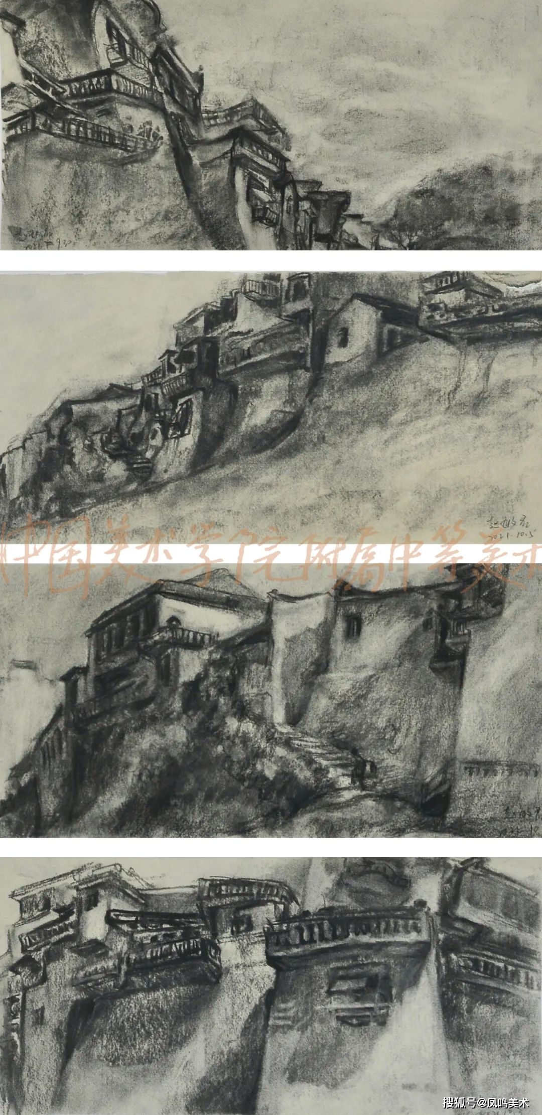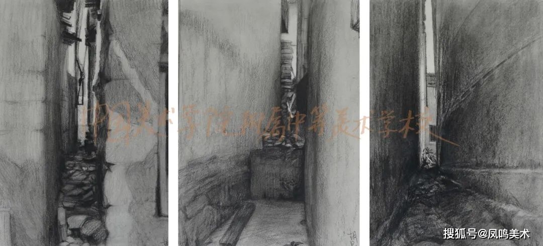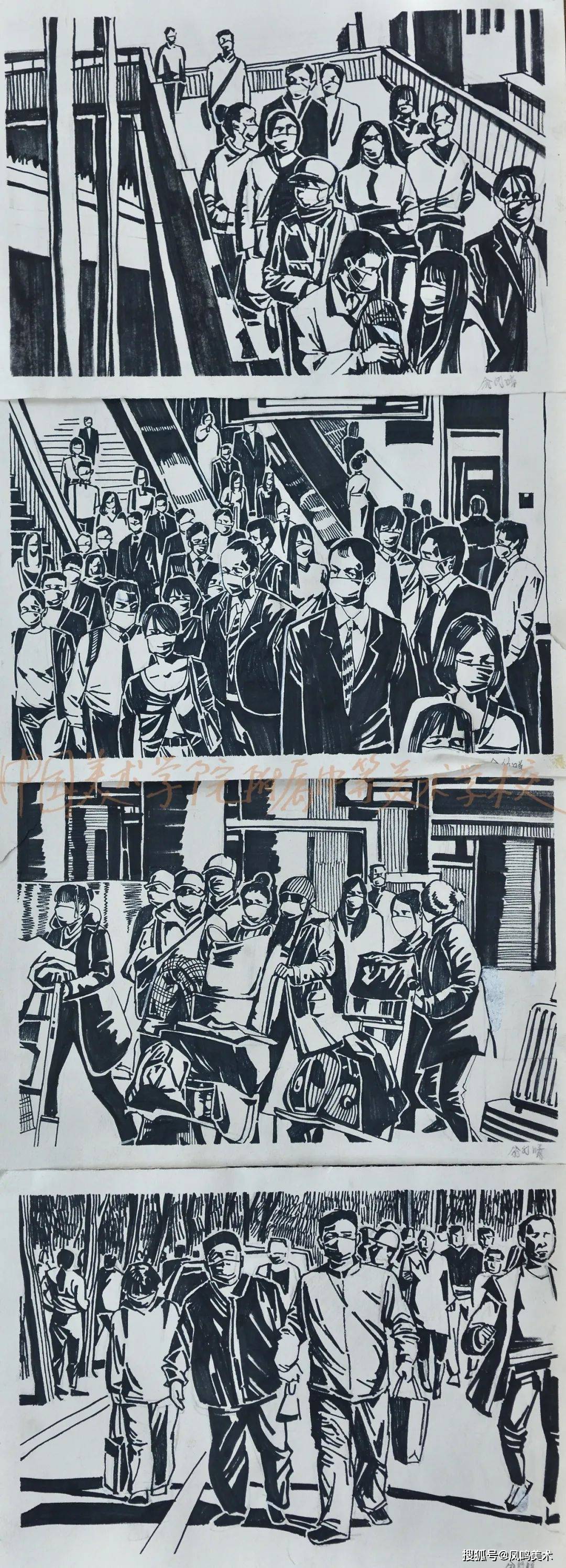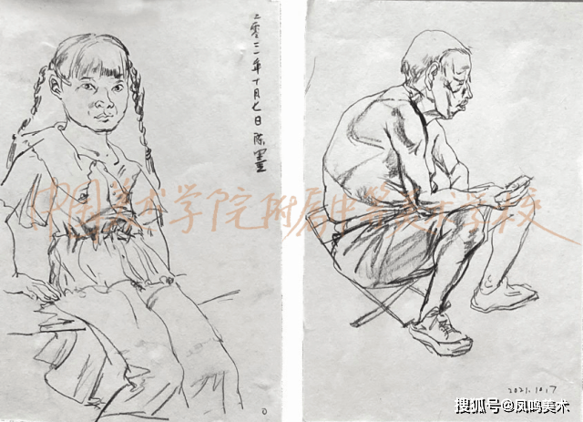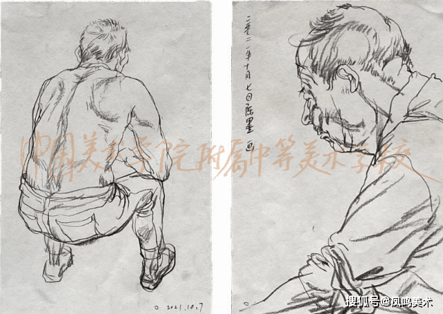 国美附中一直以来重视的速写教学,注重日常的积累。附中优秀的速写和创作作品内容上从生活速写到下乡实践,从居家疫情作品到连环画的创作,较完整体现了从课堂基础训练到创作之间的教学联系,传达了活泼丰富的“感受力”。