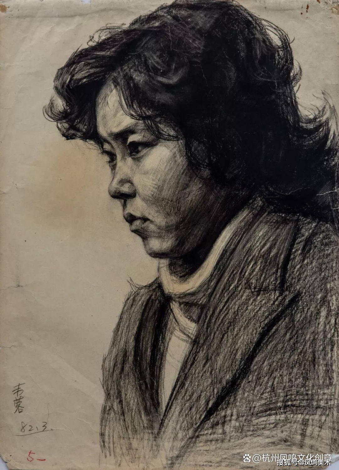 韦蓉 《头像》 纸本/炭笔 39×54cm 1982年