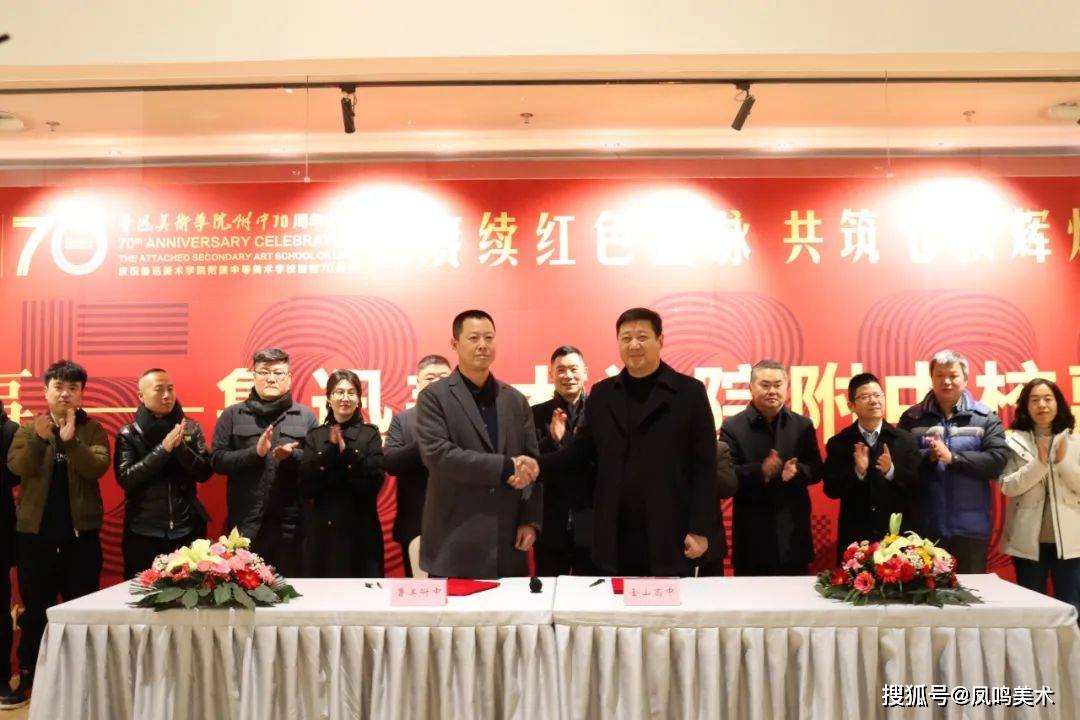 开幕式结束,鲁美附中常庆伟校长与金山高级中学於学林书记就在金山高级中学设立鲁美附中江苏考点及人才培养研讨交流等方面共同签订战略合作协议,交换文本。在热烈的掌声中展览开幕。