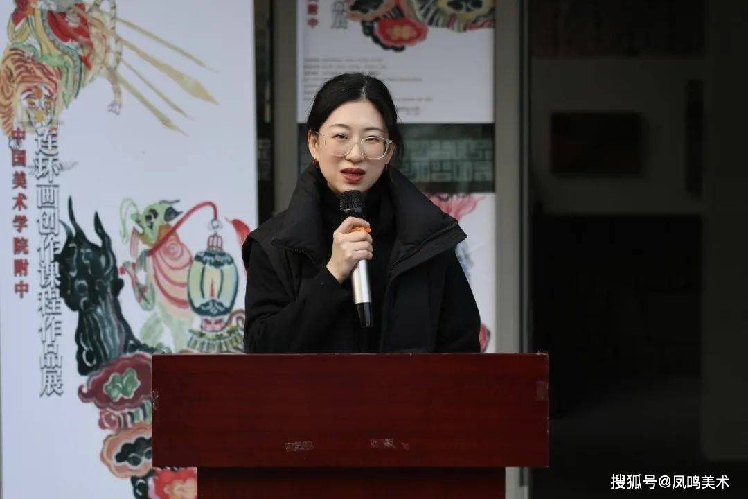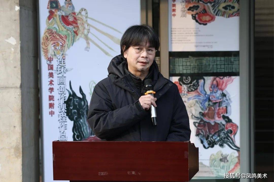 附中直属党支部书记刘超群宣布展览开幕,中国美术学院绘画学院院长邬大勇,电影学院院长徐小明,中国画学院副院长盛天晔,雕塑与公共艺术学院副院长余晨星,原跨媒体艺术学院院长管怀宾,绘画学院佟飙老师,电影学院邵文欢老师,中国画学院吴冠华、林皖老师,附中校长张俊,副校长郑端祥,附中校友会副会长俞芳秀,办公室主任方世峰,教务科科长赵艳华,教学部主任傅东英,学生科科长金睿智,教研室主任杨正,艺术实践交流中心主任卢明辉,团委书记王瑾,连环画创作课程项目组及师生代表出席开幕式。开幕式由附中连环画创作课程项目组教师张懿主持。
