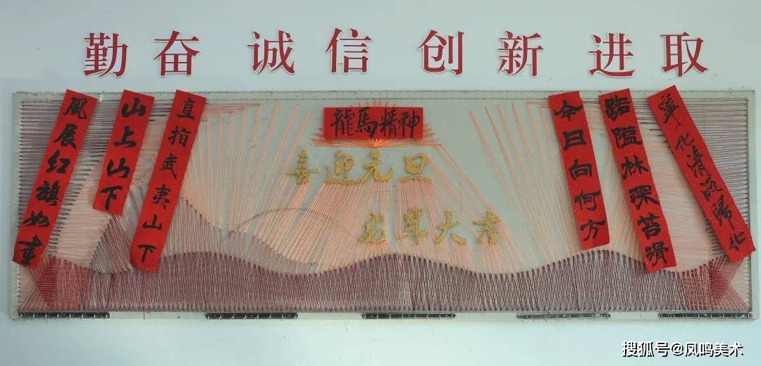 创作感想:弦丝画作为我国的非物质文化遗产,起源于上世纪六七十年代,如今,随着刺绣和编织的复兴,弦丝画艺术重获新生,绽放辉煌。在这次以“劳动辞旧岁 艺起迎新年”为主题的板报创作活动中,我们希望以这种传统的艺术形式表达对新年将至的美好期盼。