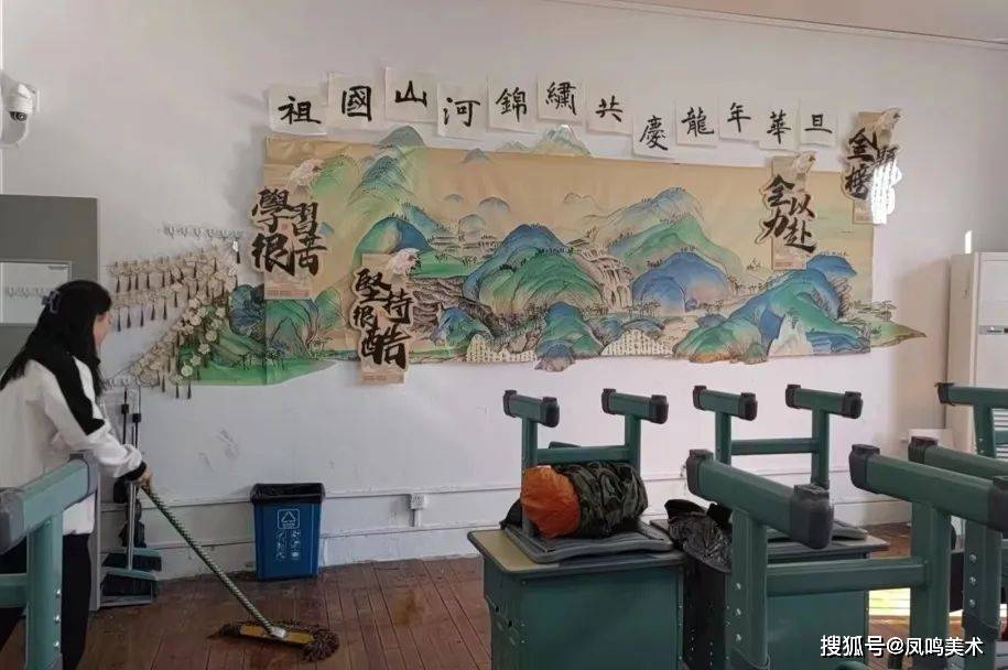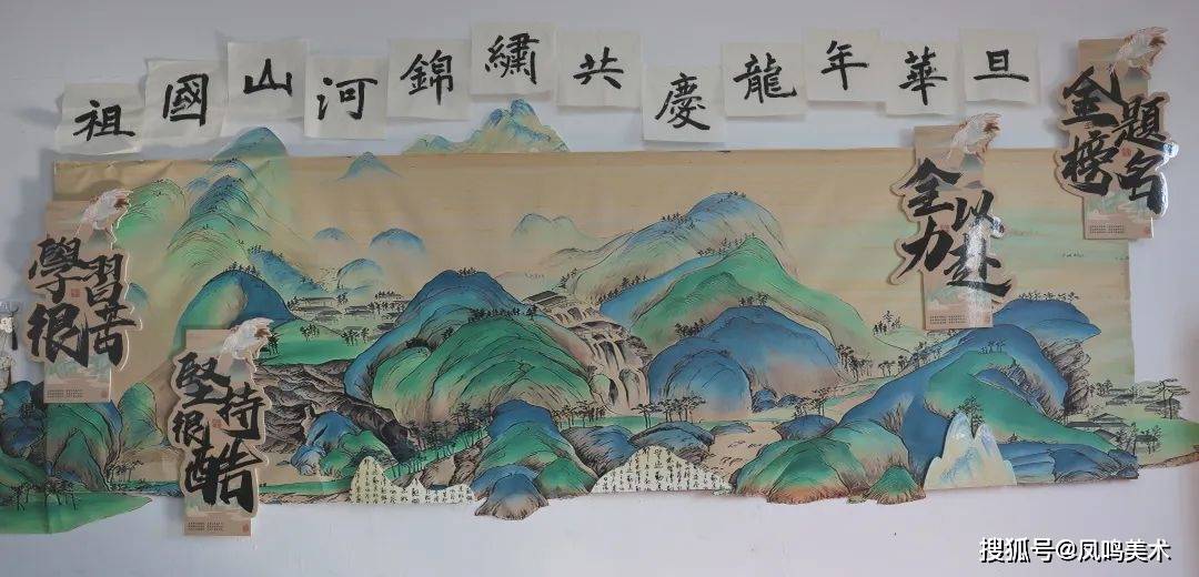 创作感想:赏山川秀美,迎龙年华旦。新的一年开启新的希望,承载新的梦想。拂去岁月之尘,让欢笑和汗水凝结成对未来美好的期盼。愿高三二班的同学在未来的学习中全力以赴,金榜题名。