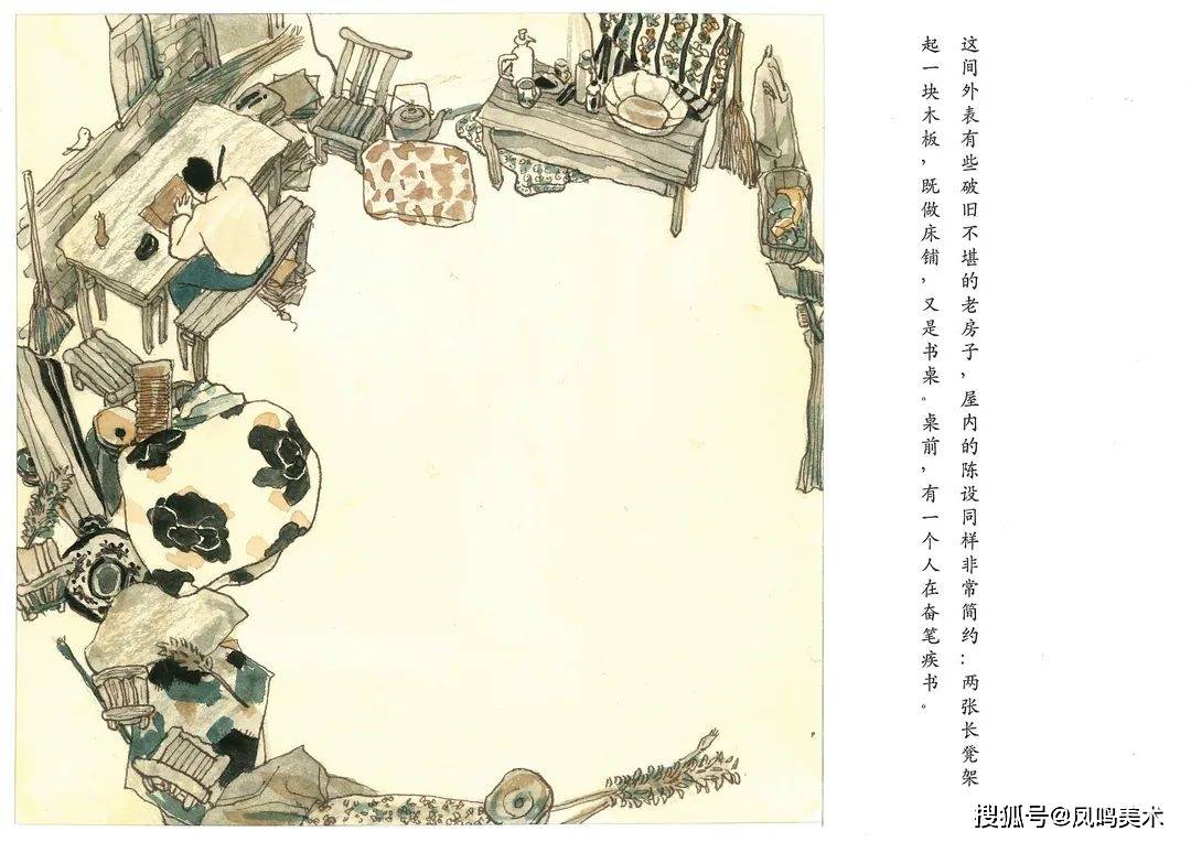 本套连环画创作,在手法上选用的是较为传统的线描。根据老师的建议,在线描的基础上,侧重于画面构架与形式美感。