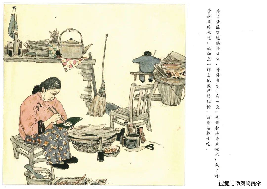 连环画围绕陈望道老先生的故事展开,这是一件发生在一间小柴房里的趣事。1920年,陈望道先生受邀翻译《共产党宣言》,地点选择在了他的老家--浙江义乌分水塘村的一间小柴屋。翻译期间,他没日没夜地工作,而母亲负责他的起居。正有一次,他竟把墨汁当做红糖,连带粽子吃得津津有味。“够甜,够甜的了!”真理的味道,的确是甜的。