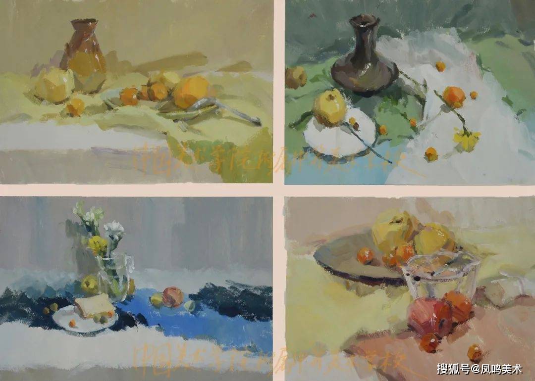附中色彩教学围绕两大内容展开:一、感知和认识色彩——掌握画面整体性的控制和色彩写生的观察,学生借助色彩学知识,认识自然色彩的变化规律,培养敏锐的色彩感受。二、色彩的表达与表现——从直觉表达自然色彩效果,使学生掌握基本技艺,鼓励学生逐步尝试和吸收多种表现手法,引导其关注画面的形式构成、色彩构成、材质构成等。