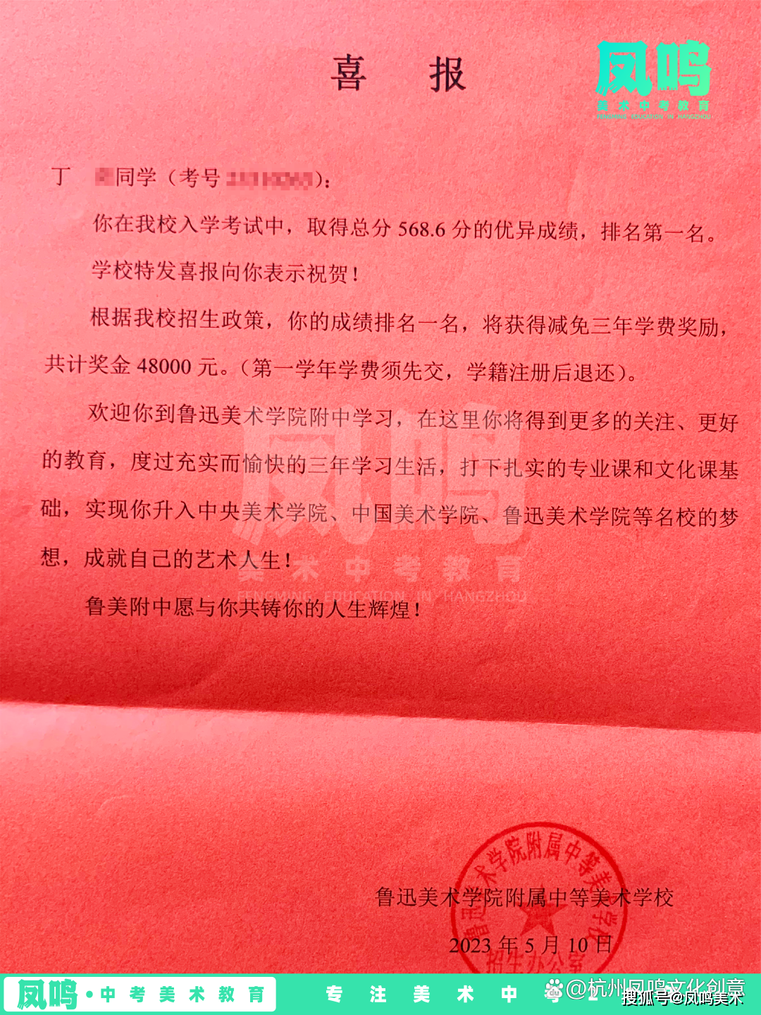 来自凤鸣美术中考教育的优秀学子,丁奕摘得2023年鲁美附中的总分全国唯一状元桂冠