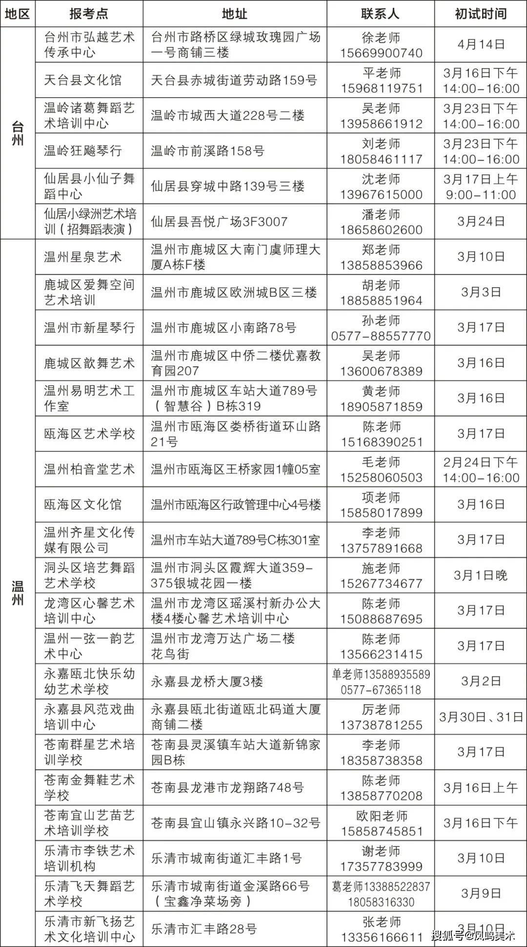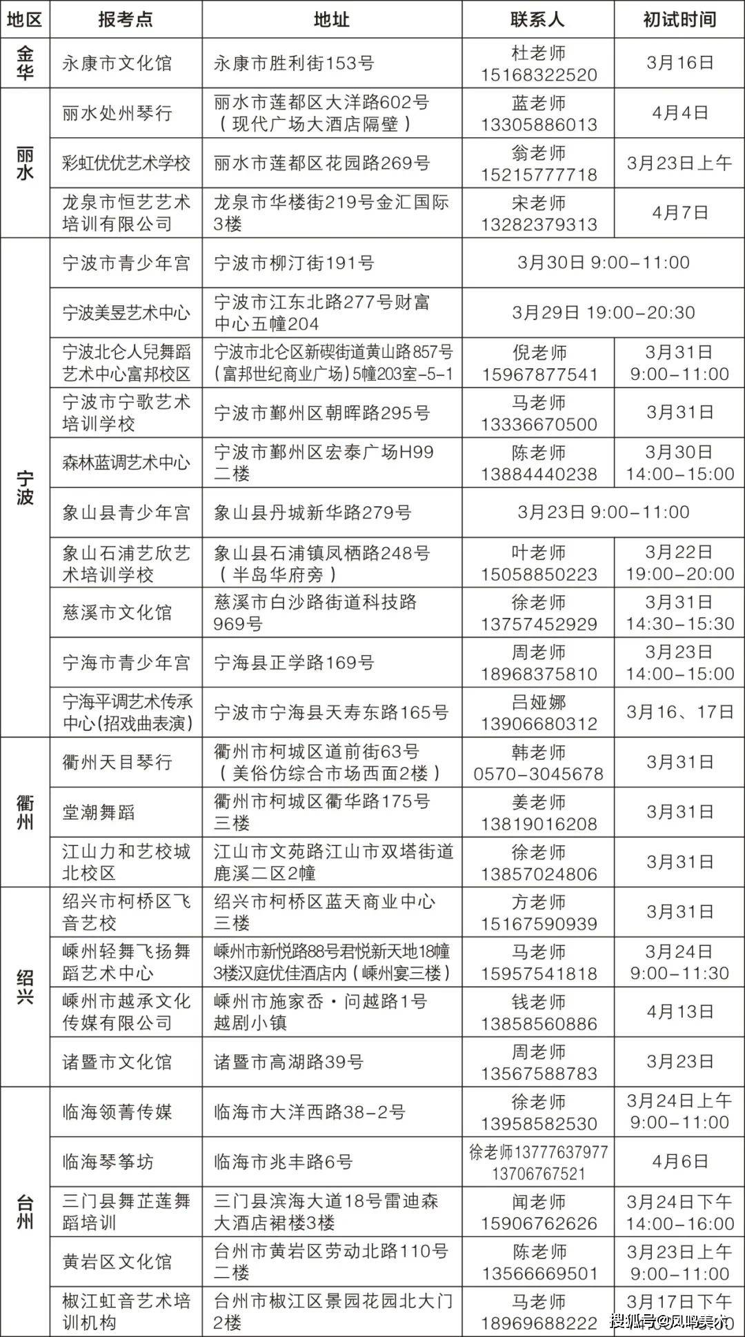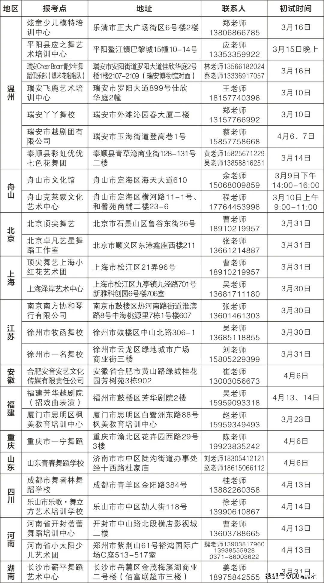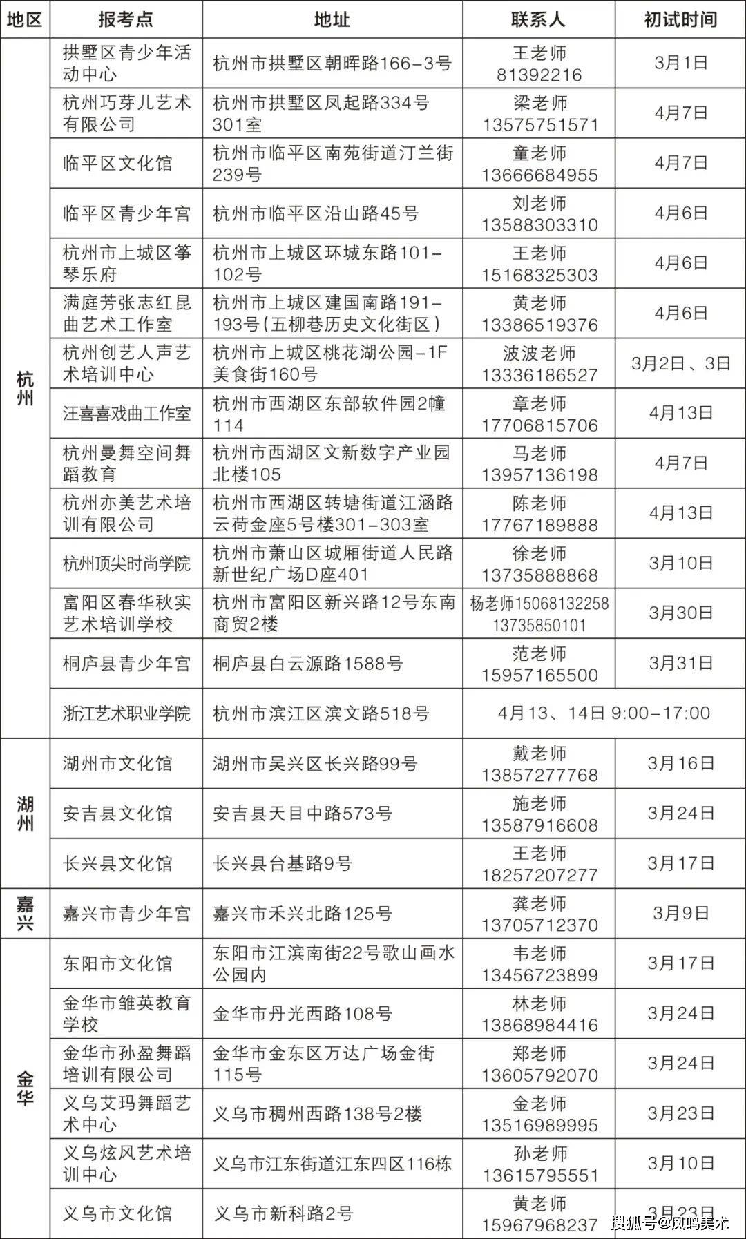 十、各地市考点及初试时间