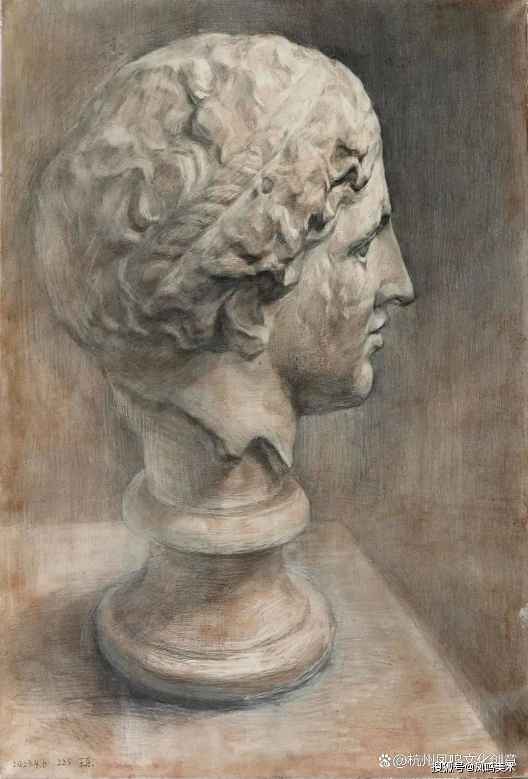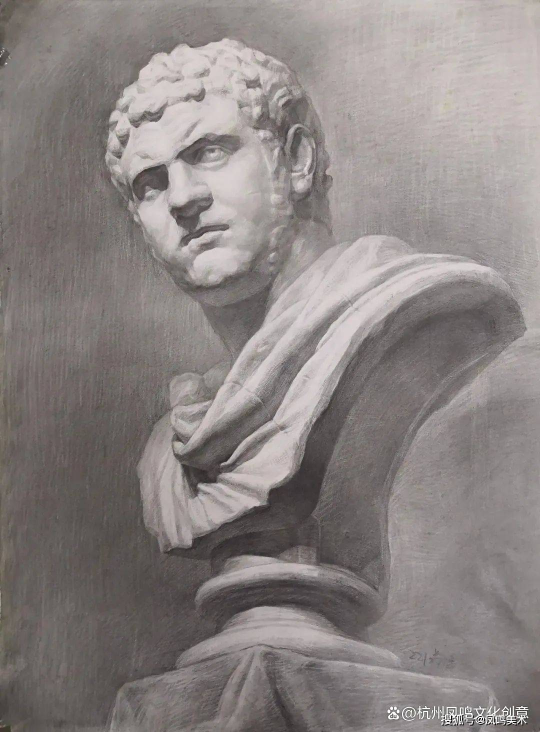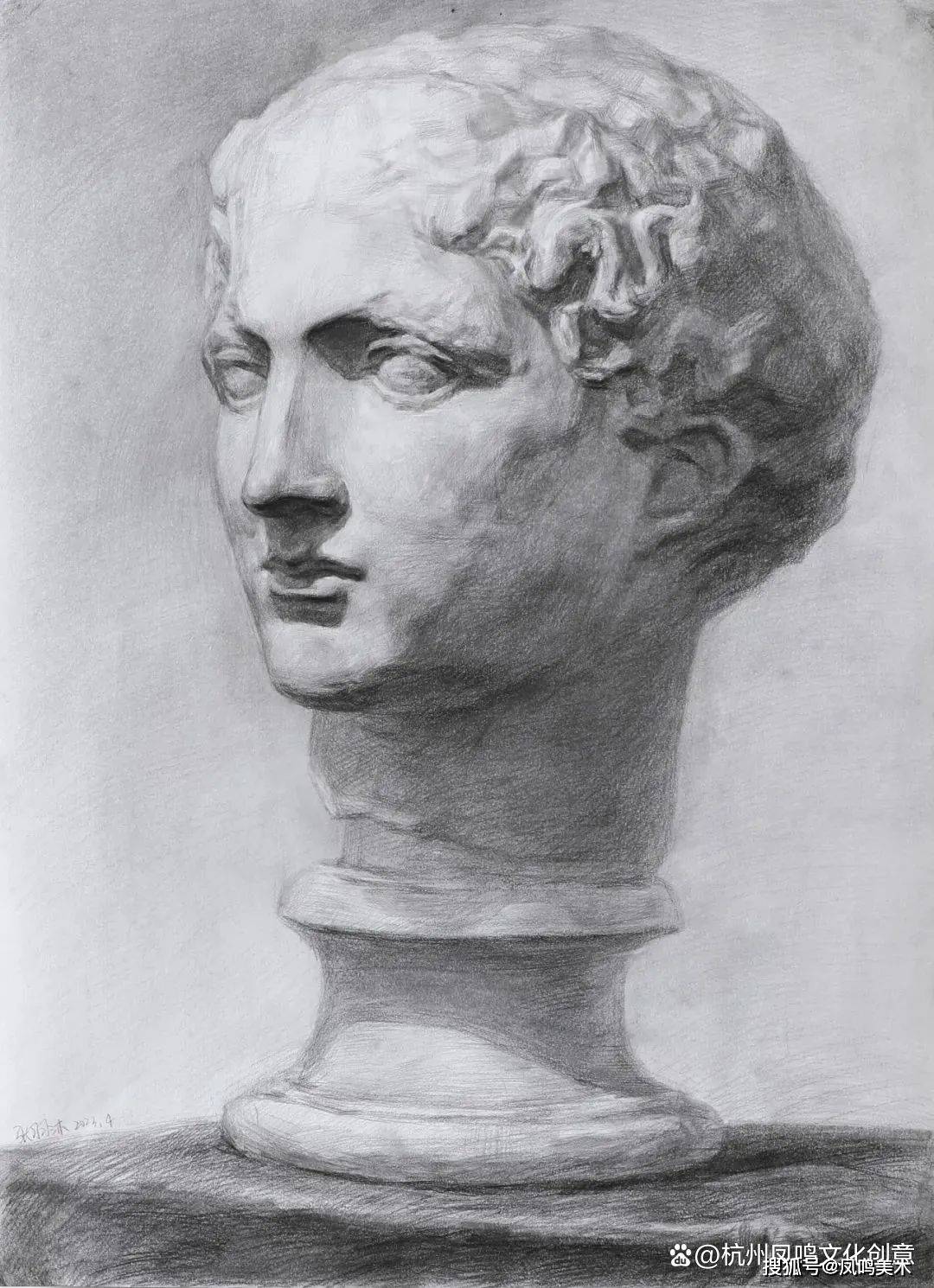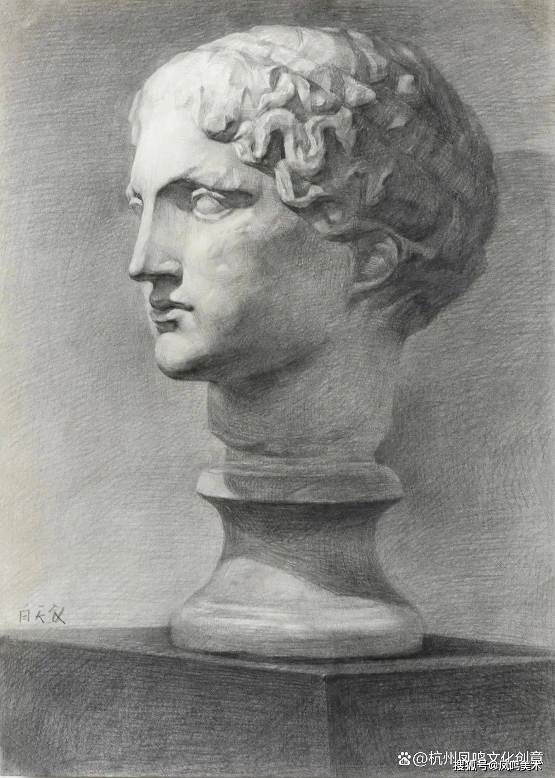 石膏像考题:罗马青年写生,时间3小时