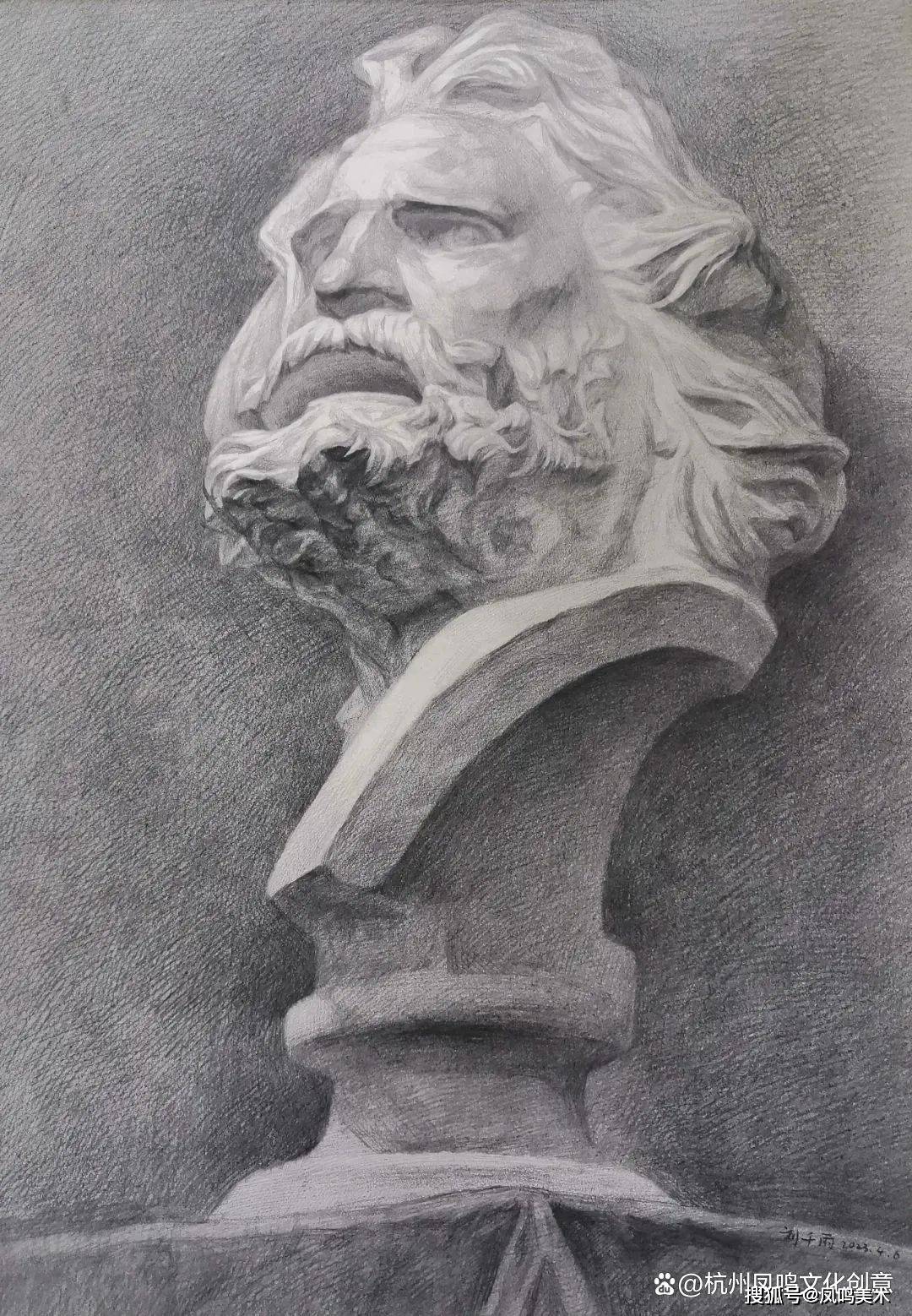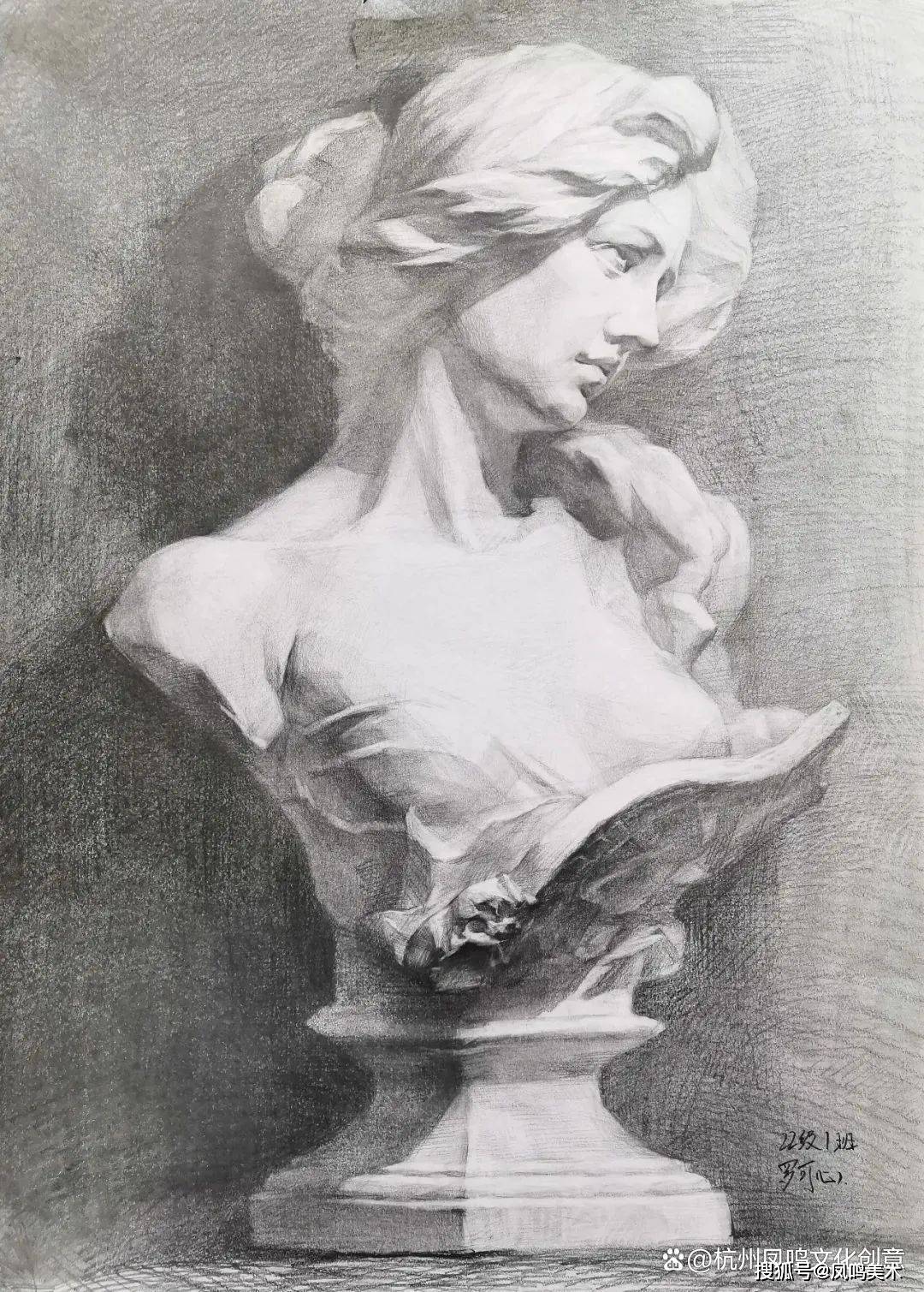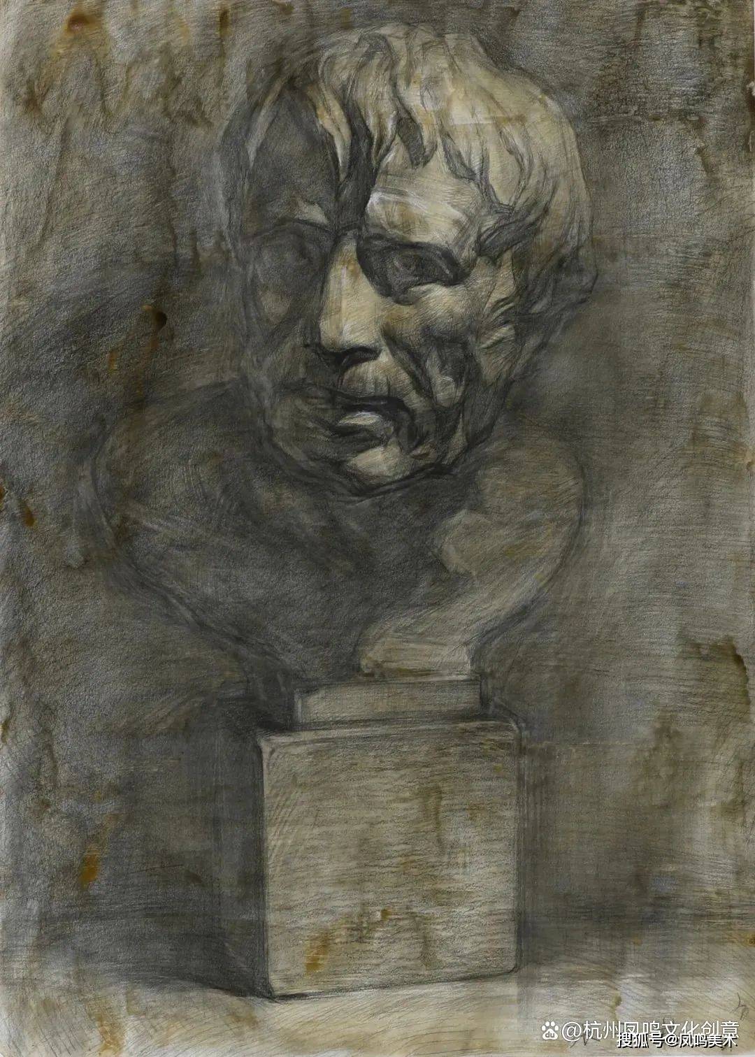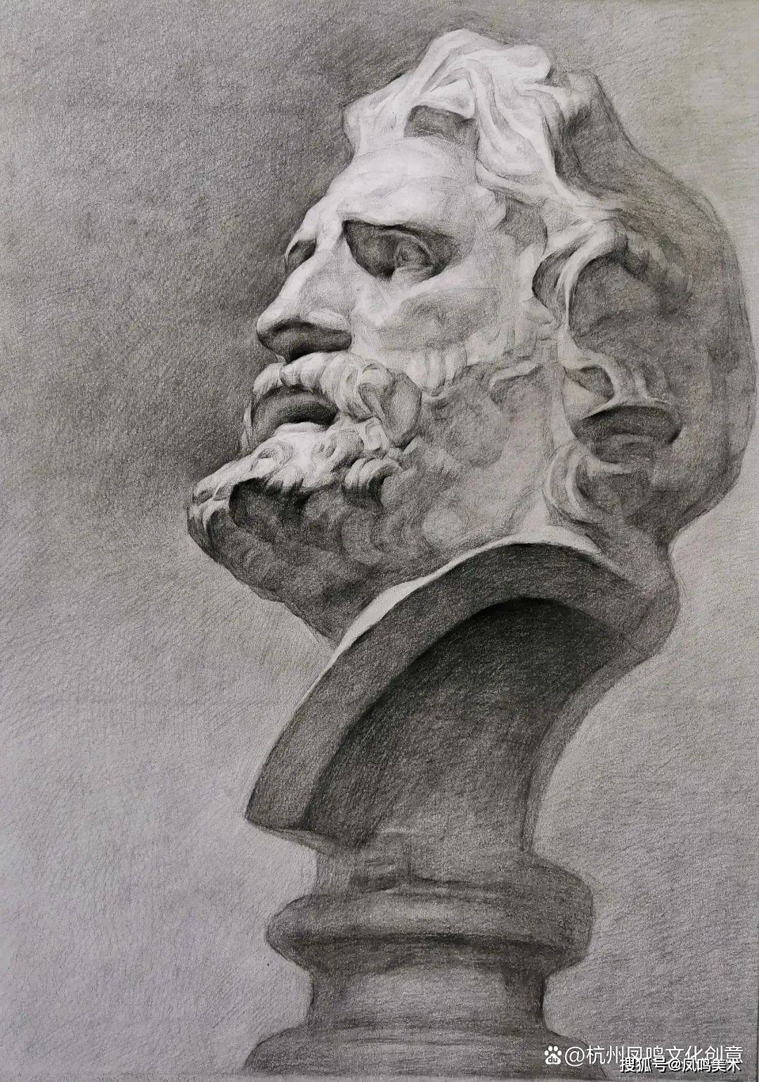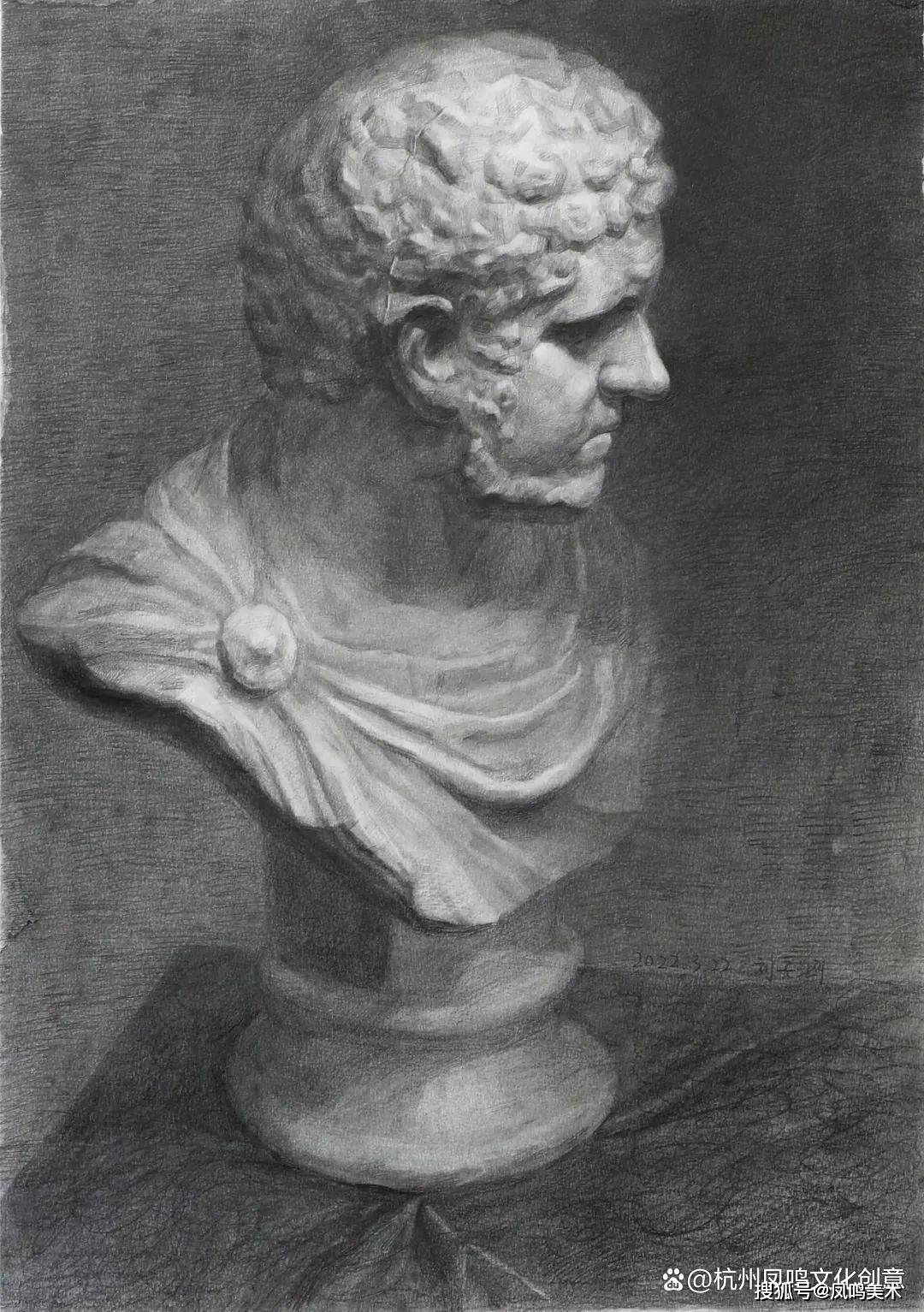 石膏像考题:罗马青年写生,时间3小时