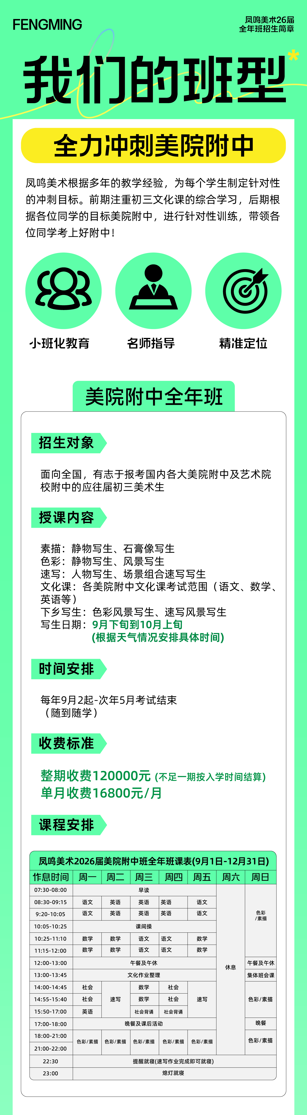 全力冲刺美院附中!2026届凤鸣美术美院附中全年班开启招生!